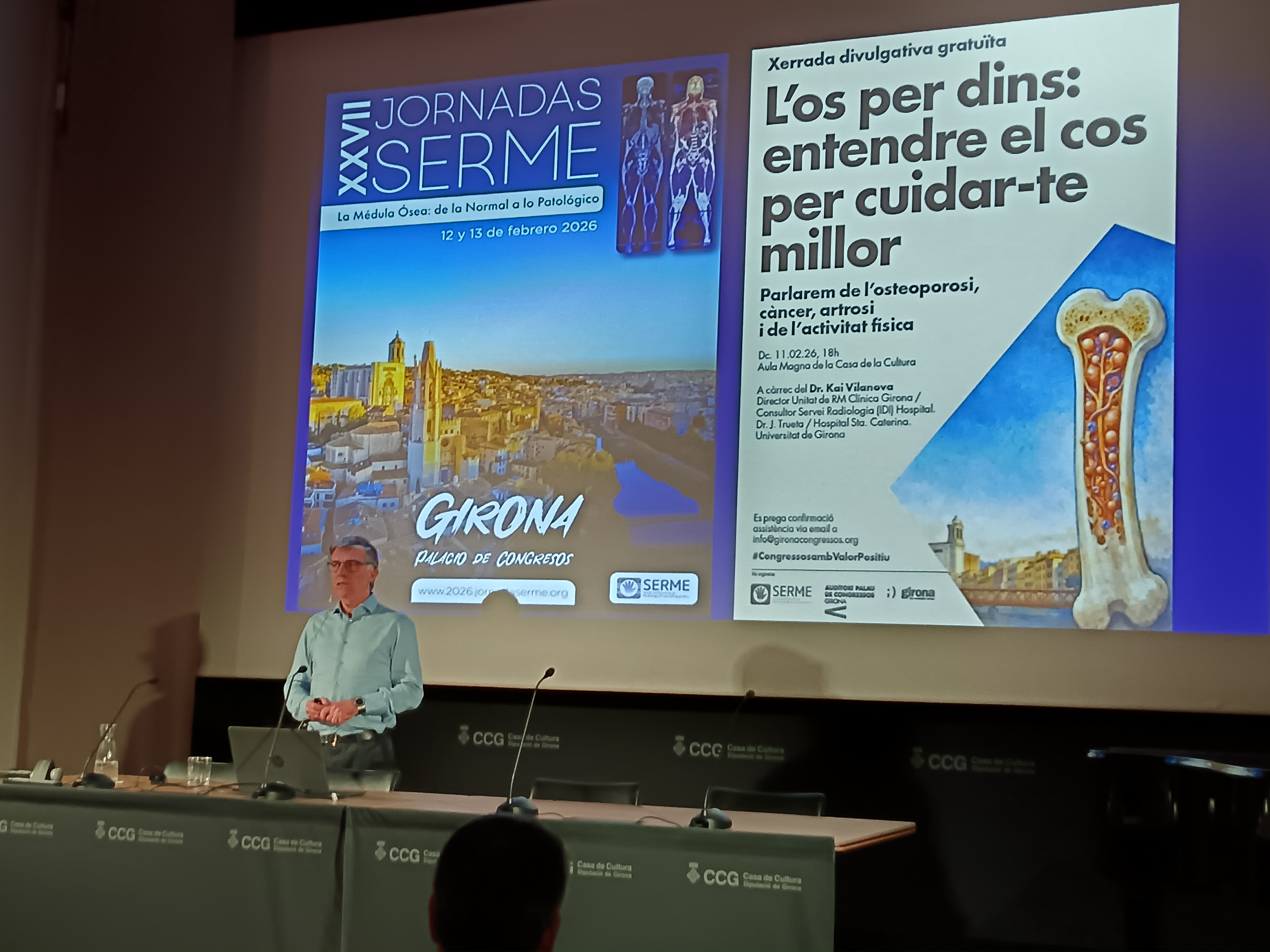 NotíciesCongressos amb valor positiuEls congressos que es celebren al Palau de Congressos estan oberts a la ciutadania. 23 DE FEBRER DE 2026 En el marc de les XXVII Jornades SERME, celebrades al Palau de congressos el 12 i 13 de febrer, el Doctor Kai Vilanova va oferir a la Casa de la Cultura de Girona, la conferència titulada "l´os per dins: entendre el cos per cuidar-te millor" de forma gratuïta i oberta a la ciutadania, com a acció del llegat que deixen els congressos a la ciutat. << Tornar |